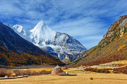 尤其亞丁匯集了稻城秋天所有濃烈的顏色:純凈的藍(lán)天,飛過白云間的蒼鷹,風(fēng)格獨(dú)特的藏鄉(xiāng)建筑,金黃的秋楊,深紅的沼澤,波光粼粼的小河,多么美的一幅油畫,是人們歸隱田園的夢(mèng)想天堂。