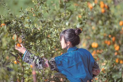 不遠(yuǎn)處,農(nóng)家大哥左握微型秤,旁邊框框紅艷艷草莓待稱,右拿手機(jī)收付款。穿過溪流木橋,黃四娘家青果累累,爍爍梨花下,女兒正梳妝挽云鬢;沈家河壩菜花黃黃,別院人聲鼎沸。遙想當(dāng)年,坡陡路險。而今,鄉(xiāng)村振興,片片梯田,阡陌交通,戶戶通路。雨天一身泥,晴天一身灰已不復(fù)返。