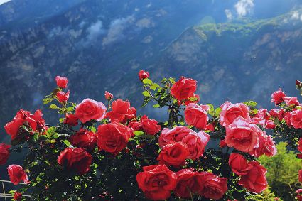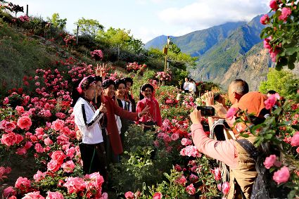 近日,丹巴縣甲居藏寨則姆花園20余畝玫瑰花競(jìng)相綻放,美不勝收。漫步其中,曲徑通幽,遠(yuǎn)處的墨爾多神山巍然聳立,山下的金川河奔騰高歌,四周的藏寨田園錯(cuò)落有致,眼前的四季玫瑰驕艷似火,吸引了不少游人前來賞花、拍照、打卡,好一幅怡然自得的山水田園畫卷。
