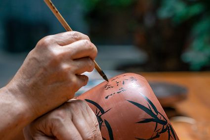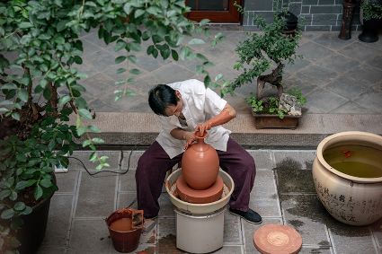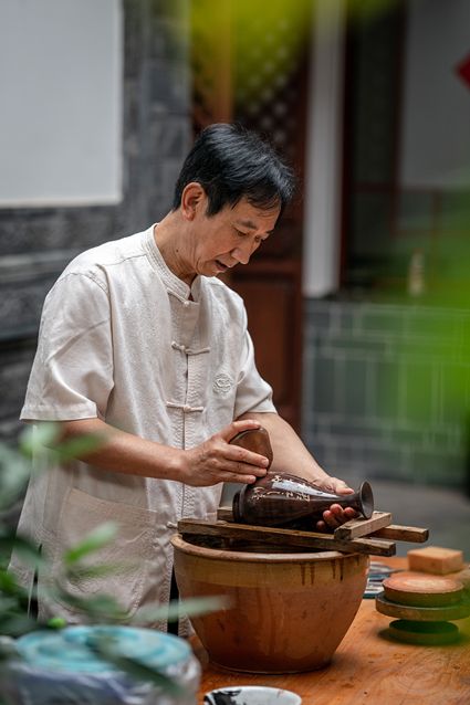 生活在云南省紅河哈尼族彝族自治州建水縣碗窯村的徐榮洪是當(dāng)?shù)匦旒腋G的第五代制陶藝人,也是非遺建水紫陶燒制技藝的傳承人。 泥料制備、拉坯造型、濕坯裝飾、雕刻填泥、高溫?zé)?、無(wú)釉磨光……要想做出精良的紫陶工藝品,每個(gè)流程都需要潛心鉆研?!爸谱骷妓嚟h(huán)環(huán)相扣,某一道工序出現(xiàn)紕漏,燒出來(lái)就是瑕疵品?!?徐榮洪拿起刻刀,對(duì)陶坯表面開始進(jìn)行雕刻。 今年57歲的徐榮洪小時(shí)候就跟著長(zhǎng)輩上山挖陶泥,多年來(lái)堅(jiān)持鉆研建水紫陶的制作技藝。 徐榮洪介紹說(shuō),作為紫陶藝人,以陶為紙,根據(jù)器型將不同的文化與藝術(shù)形式注入其中,使其具有無(wú)限活力。非遺文化閃爍著人類智慧的光芒,也承載著人們心底的情思鄉(xiāng)愁。