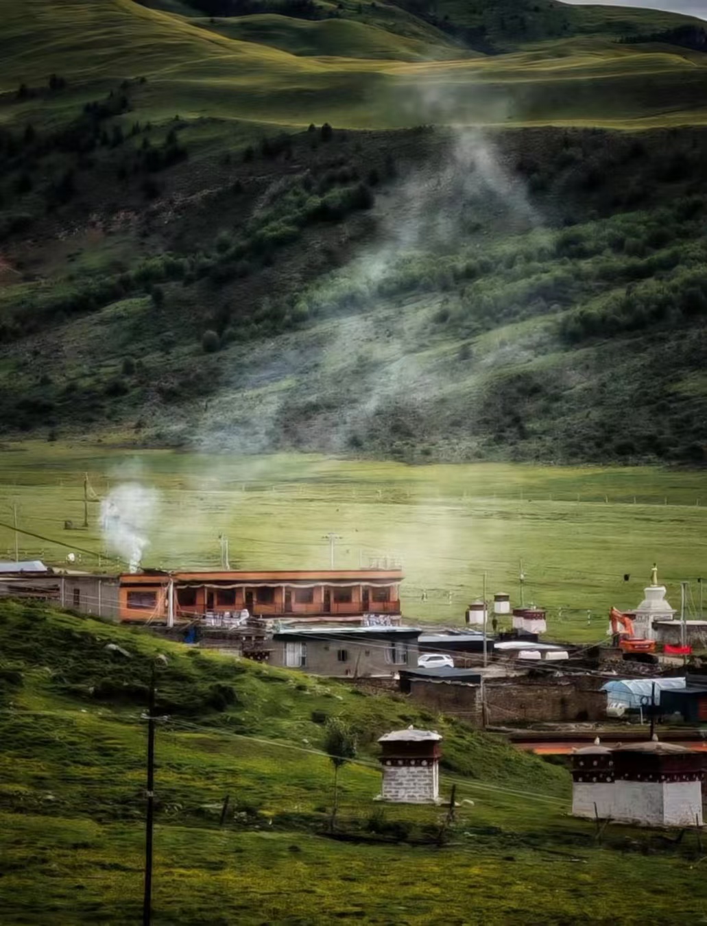然日卡村是格聶山下一個典型的藏族村莊,因自然景觀優(yōu)美而聞名。站在村前觀景平臺上,能看到以雄奇險峻而著稱的格聶神山。格聶神山位于理塘縣西南部,是四川省甘孜藏族自治州理塘縣境內(nèi)的著名山脈,?它不僅是四川第三高峰,?而且因其獨特的自然景觀和深厚的文化背景,?吸引了眾多旅行者和朝圣者。?格聶神山的地質(zhì)構(gòu)造和自然景觀極為豐富,?包括冰川、?雪峰、?草原、?沼澤、?瀑布等,?展現(xiàn)了大自然的鬼斧神工和生命的多樣性。?