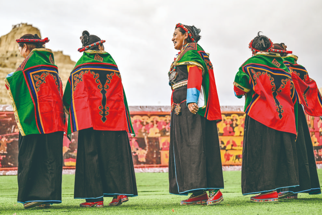 “宣舞”起源于札達(dá)縣,是西藏阿里民間傳統(tǒng)舞蹈?!靶琛比诤喜貞颉⑽璧?、說唱等主要的藏民族民間藝術(shù),內(nèi)容涵蓋藏民族宗教、禮儀、風(fēng)俗、節(jié)慶等各方面的內(nèi)容。2008年,“宣舞”入選第二批國家級非物質(zhì)文化遺產(chǎn)名錄。
