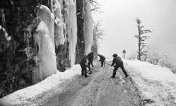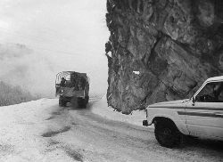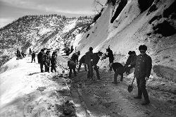 一九九七年十一月二十四日,連續(xù)多日大雪,把整個二郎山裹得嚴嚴實實,白茫茫一片。陣陣山風吹過,大霧就像瀑布一樣,從山頂直往下翻涌傾瀉。 一大早,州交通局打冰除雪排險的干部職工就從二郎山管理站直奔山埡口。載有防滑砂的大貨車穿迷霧,繞山梁,向山頂埡口疾馳。由于氣溫太低,霧又大,車上的擋風玻璃很快就結(jié)下了冰,路面打滑非常嚴重。前面車輛堵了起來,排險人員只好下車步行。 大霧彌漫,能見度很底,陰霾的天空又飄起了紛紛揚揚的雪花,剌骨的寒風陣陣襲來,只聽見車蓬布在風中“嗶剝”作響,卻看不見前面到底堵了多少車。排險人員只好相互攙扶踩著冰滑的邊路艱難地向行。好不容易來到堵在最前面的車子面前。原來是一輛載著原木的東風牌大貨車側(cè)滑在公路上,把整個公路堵死了。 局領(lǐng)導(dǎo)當即指揮大家用鋼釬、鐵鎬和鋤頭處理冰道,沒有撮箕,大家借來加水桶裝運冰雪……氣溫仍在急劇下降,剛從雪堆里刨出來的路,又被結(jié)起一層冰,就像地面上澆上了油,這就是冰雪道上有名的“桐油凌”。 有二位老同志不顧年老體弱,積極參與打冰除雪,一個在打冰時,被彈起的冰碴把腦門劃了一個口子,鮮血直往外冒。有人想幫他包扎,他堅決不干,自己就用手帕按住,把帽子向下拉蓋住傷口就算了。血從手帕中浸透出來,與眉毛上的冰凌結(jié)在一起。氣溫太低,冰層太厚,十字鎬每挖一下,多數(shù)情況下也就是挖下一個白點而已。不一會兒,另一位老同志已是滿頭大汗,大家勸他休息一下,他卻說:趁著現(xiàn)在雪不是太大,早點把主道上的冰雪多除點,過往二郎山的車輛就多一份安全。 排險人員的手凍紅了,刨冰雪碰傷的指頭還流著鮮血,身上蒸發(fā)的熱氣,把衣領(lǐng)口、袖子口和褲子口結(jié)成了冰,可是,誰也沒有吭一聲。 ……受堵車輛終于向前開動了。 風,越刮越猛,雪,越來越大。 防滑車在冰雪道上艱難地向前爬行著,車箱上面的職工們揮舞的洋鏟向路面撒著防滑砂。一路上風絞雪,防滑車象一頭不聽使喚的牛,顛簸、亂竄,好不容易才來到260(二郎山最險處),對這里“桐油凌”路面進行重點防滑處理后,防滑車又返回來,開始向山頂進發(fā)……風雪二郎山上打冰除雪、防滑排險,看似沒有驚天動地的壯舉,身臨其景才知其艱難辛苦。難怪當年每每經(jīng)過二郎山冰天雪地奇險路段的車,都會向風雪中屹立路邊的交通系統(tǒng)排險保暢通的職工們鳴笛致敬,風雪中的那份情彌足珍貴。 川藏線上的老司機傳下來一首傷心的順口溜:“車過二郎山,如闖鬼門關(guān),萬幸不翻車,也要凍三天!”其險峻實為罕見,尤其是途經(jīng)二郎山260(公路公樁)處,曾被淡虎色變的人稱為“鬼招手”的險路段。 1983年1月3日,有著安全行車44萬公里記錄的一位駕駛員開著輛嶄新的東風牌貨車,同行還有兩名職工,夜行二郎山,在彌天大霧中神秘地“失蹤”了。十五天后,搜山的人才用望遠鏡看到260公里路樁處的山崖下,有一塊汽車破篷布掛在樹枝,猶如招魂的凄厲幌幡在冷風中招搖晃動。鋼纜繩吊著搜山的人下到崖下400米深處的谷底。扒開一座座雪堆,叫人汗毛倒豎:雪堆下,盡是廢大梁、爛車廂、銹車頭和支離破碎的汽車,足有一個汽車連!一輛不知埋了多久的卡車廂里牛肉已腐爛,駕駛室里坐著三具發(fā)黑的僵尸……其狀慘不忍睹!