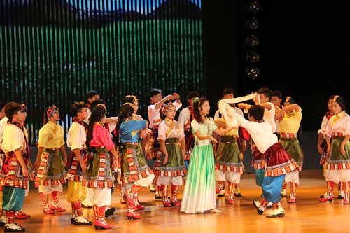 在歡快的音樂(lè)聲中,《師恩如歌》拉開(kāi)了“園丁頌”文藝晚會(huì)的序幕。悠揚(yáng)的歌聲,歡快的舞蹈,熱烈的掌聲,演繹著同一個(gè)主旋律:“老師,是您為我們開(kāi)啟了智慧的大門(mén),加減乘除,算不盡您做出的貢獻(xiàn)!詩(shī)詞歌賦,頌不完對(duì)您的感激!千言萬(wàn)語(yǔ)只能匯成一句話(huà):老師,您辛苦了,我們永遠(yuǎn)感謝您!”晚會(huì)以“園丁頌”為主題,分為“播種希望”、“愛(ài)的光芒”、“九月禮贊”三個(gè)篇章。歌曲《圓夢(mèng)中國(guó)》、情景劇《守望白云》、舞蹈《老師親,媽媽親》等13個(gè)節(jié)目先后上演。一首首膾炙人口的歌曲,唱出了對(duì)人民教師的無(wú)限深情,一個(gè)個(gè)激情昂揚(yáng)的舞蹈,道出了對(duì)人民教師的萬(wàn)般感激。旋律優(yōu)美、歡快熱烈、精彩紛呈的晚會(huì)深深地吸引了現(xiàn)場(chǎng)觀眾的眼球。一聲聲發(fā)自?xún)?nèi)心的問(wèn)候,一句句來(lái)自心靈的祝福,將晚會(huì)一次次推向高潮,晚會(huì)現(xiàn)場(chǎng)掌聲雷動(dòng)、歡呼雀躍,《吉祥祝?!犯栉璞硌轂檎_(tái)晚會(huì)畫(huà)上了一個(gè)圓滿(mǎn)的句號(hào)。