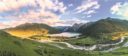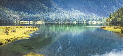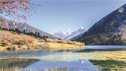 一天之中,數(shù)清晨和傍晚的海子最美,晨光中,湖水猶如鏡面般倒映著周圍的景物,天色漸漸亮了,周圍的景物也在 “鏡子”中漸漸清晰起來,特別是那些雪山下的海子,當(dāng)太陽給雪山鍍上一層玫瑰金,倒影更美。傍晚,落日的余暉灑在海子和它周圍的景物上,又是另一種美,天上再有幾縷晚霞,更絕。四季里,就要看秋天的海子,因為這時海子周圍的景色是最美的,紅葉、黃葉、綠葉相間,便襯托得海子更美。
