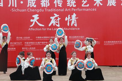 到處都是炫麗的色彩,到處都有神秘的傳承,6月10日,第六屆成都國際非遺節(jié)在成都拉開帷幕。當(dāng)天下午2時,一場我州特有的文化大戲在成都非遺博覽園西城事廣場上演。我州石渠真達(dá)鍋莊隊在此激情演繹,他們揮舞長袖,翩翩起舞,讓前來游覽的觀眾贊不絕口。