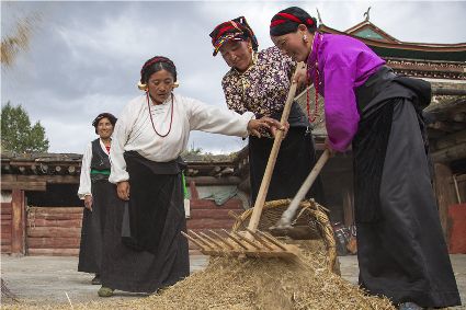 康定市姑咱鎮(zhèn)達(dá)杠村村民李翠軍一邊采摘著蘋果,一邊喜悅地告訴記者,達(dá)杠所產(chǎn)的蘋果個頭大、色澤好、吃味好、耐儲藏,到目前,全村蘋果種植面積800多畝,去年蘋果產(chǎn)量160萬斤,今年雨水好,蘋果產(chǎn)量將猛增到200萬斤以上。目前,村子里蘋果種植大戶家庭年收入過10萬元的就有20多戶??刀ㄊ袑⑦_(dá)杠村打造成川藏觀光農(nóng)業(yè)第一村。按照規(guī)劃,村里會進(jìn)一步擴大蘋果種植面積,以蘋果利用為核心,發(fā)展“春賞花、夏攝影、秋摘果、冬體驗”四季觀光農(nóng)業(yè)產(chǎn)業(yè)。五谷豐登六畜興旺,甘孜高原共慶豐收。農(nóng)民豐收節(jié),它既是億萬農(nóng)民慶豐收、曬豐收的節(jié)日,也是全社會享豐收、助增收的節(jié)日;既寄托著農(nóng)民的追求、農(nóng)民的希冀,也承載著全體中華兒女的深情與追憶;中國農(nóng)民豐收節(jié),農(nóng)牧民收獲的不只是甜蜜蜜的果實,鼓起的不只是沉甸甸的荷包,更是滿滿的榮譽感、幸福感、獲得感!