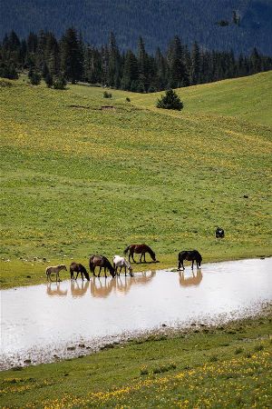 8月5日,在雅江縣西俄洛鎮(zhèn)郭崗頂,幾匹駿馬奔馳在草原上。
