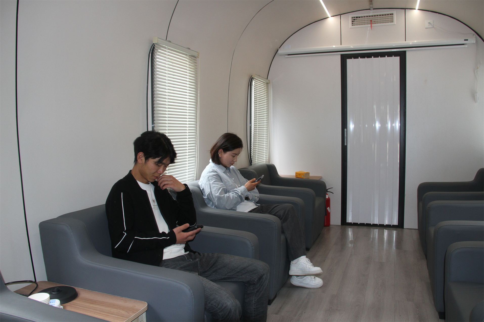 圖為游客在高原生命氧艙玩手機(jī),高反癥狀明顯減輕。