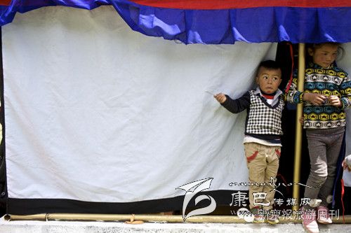 白玉縣,德沙村一民居內(nèi)孩子在帳篷邊玩耍。
