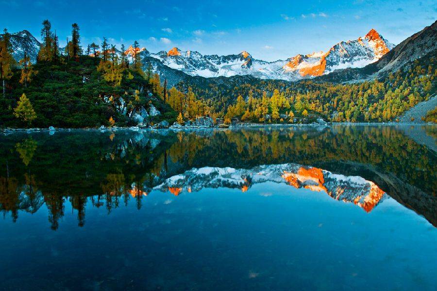 黨嶺的美,體現(xiàn)在每一個(gè)角落,雄奇壯美的雪峰、滿山遍野的彩林、星羅棋布的高山湖泊、原始天然的露天溫泉、蒼翠茂密的原始森···