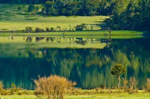 置身于德格的新路海,一汪碧綠的水,靜靜躺在群山的懷抱之中,清晨的薄薄霧氣彌漫于湖水之上,有種朦朧的仙境意味,寧靜而吉祥?;蛟S只有清晨那一只只不知名的鳥兒掠過湖邊,才能打破這一片仿佛凝固的寧靜。