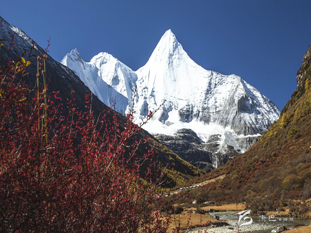 夏諾多吉雪山位于稻城縣與涼山州木里縣的交界處,海拔5958米,是三怙主雪山之一,排行第三。夏諾多吉雪山是“金剛手菩薩”的化身,這是佛教中除暴安良的神祗,它勇猛剛烈,神采奕奕,胯下圍著斑斕的虎皮,腰間纏著大蟒,威武雄壯。夏諾多吉為三怙主雪山的東峰,主峰為三棱錐狀,造型跟金字塔相似。雪山兩翼鋒利似刀,蜿蜒綿亙,在天空中勾勒出的線條尖銳有型。清晨,陽光從夏諾多吉的背后升起,從溝谷中看過去,雪山具有剪影一樣的效果。黃昏是雪山最美的時候,夕陽從西邊斜斜地照在雪峰上,整個雪峰沐浴在柔和的陽光中,裸露的巖石和冰雪體被渲染得極為艷麗。