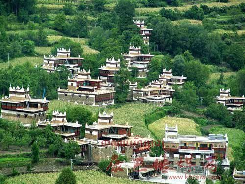 甲居藏寨象群星撒落般坐落在依山傾斜,起伏向上的緩坡上?;蛐锹淦宀迹虺砻芗?,或在高山懸崖上,或在河壩綠茵間,不時(shí)炊煙裊裊,煙云繚繞,搖搖晃晃,若幻若真,真可謂“別有天地非人間。藏寨對岸,但見萬丈絕壁凌空筆立,縱橫連綿的群峰象征一幅幅看不盡的畫廊,每座山峰都有一個(gè)美麗動人的神話故事。