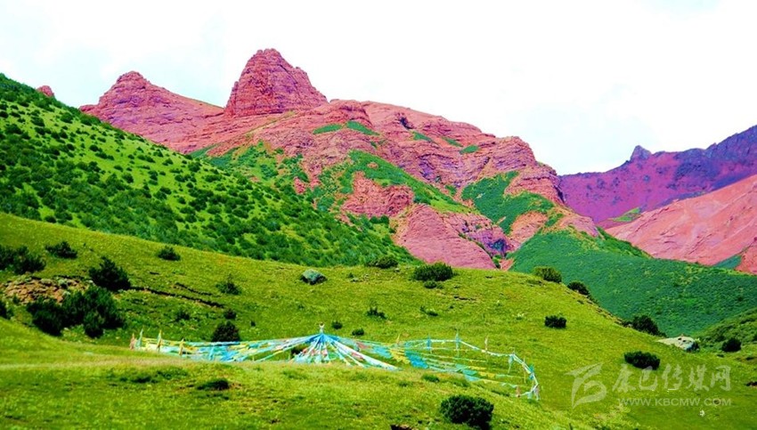 絨多巴日山體的顏色,并不只有這如火的紅艷,綠色與紅色的相間才是上帝心中的色彩。輕重不一的每一次落筆都是這位天地間最神奇的畫(huà)師心血的結(jié)晶,雄偉山體間的每一次描繪則是天才繪者靈感的閃現(xiàn)。