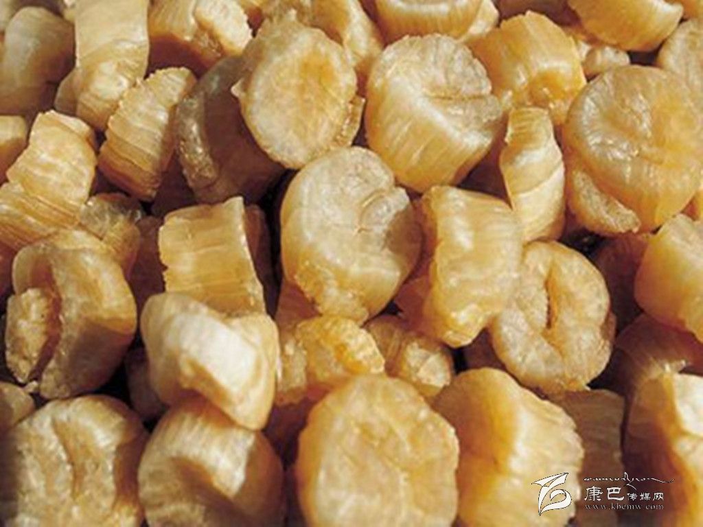 ●干貝。以色澤杏黃或淡黃、表面有白霜、顆粒整齊、肉柱較大堅實飽滿、肉絲清晰,有特殊香氣,味鮮、夠平、淡口的為上等貨;而肉柱較小,色澤深暗或是黃黑色者質量差。