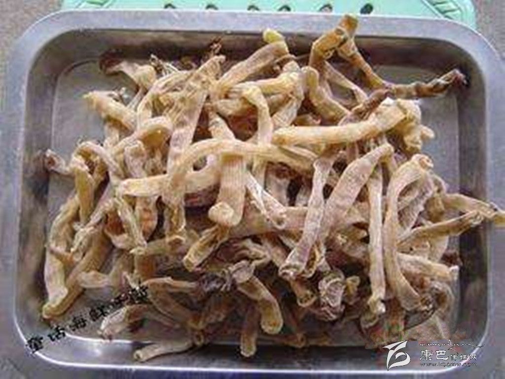 ●海參。體形完整端正、夠干、淡口、結實而有光澤,大小均勻、肚無沙的為上品;體形較完整、結實、色澤較暗者歡之。