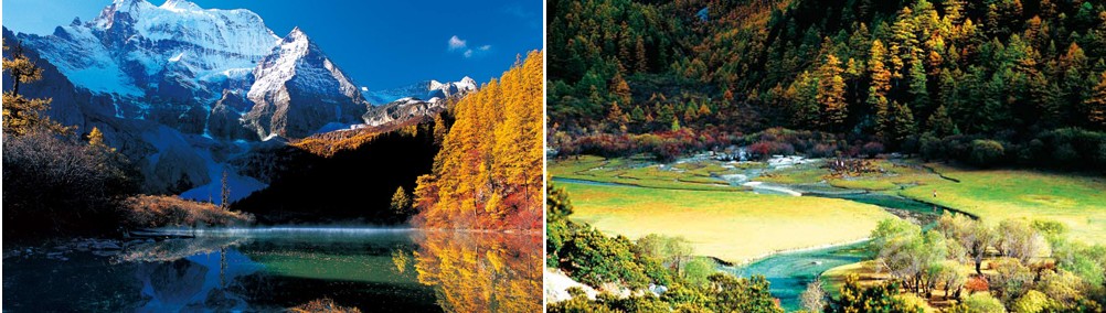 來到海子山腳下,會突然發(fā)現(xiàn)一幅由群山、森林、小溪、草地組合成的畫面,如同典型的歐式風(fēng)光。