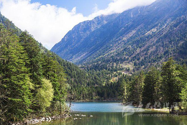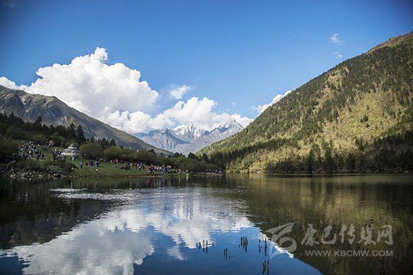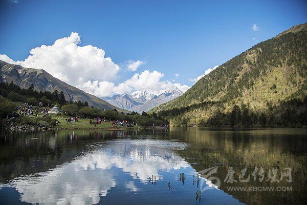 藥池沸泉一側是風景秀美的俄瑪錯,上頂藍天白云和雪山,下踏森林綠水,讓人透心舒暢。