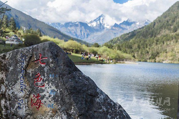 月牙形的七色海猶如一面五光十色的鏡片,鑲嵌在森林與草坪之間。叢林中百鳥輕歌曼舞,湖岸坪清幽秀雅,湖中水草飄逸,羌活魚在水底卵石中悠游,蕩舟穿霧興波,湖光山色眼底。