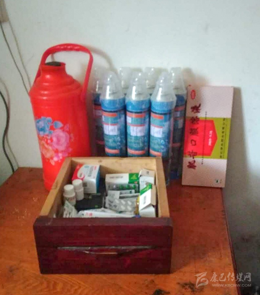 貢布卡公路養(yǎng)護(hù)管理站為游客準(zhǔn)備的開(kāi)水、氧氣瓶及藥品。