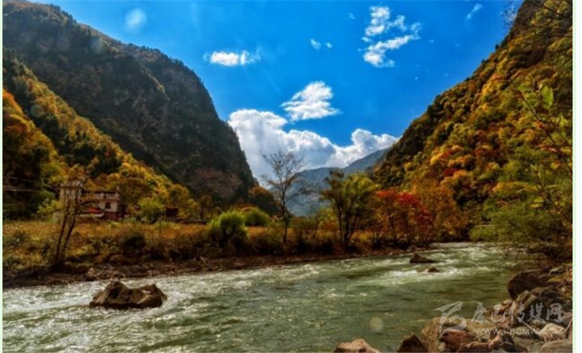 東谷河原名牦牛河,在丹巴縣五個(gè)主干水系中,它是最小的一條,兩岸多為峽谷地貌,僅在支溝匯合處出現(xiàn)有平壩草地。在陡峭高聳的河谷兩岸,針闊葉混交林呈現(xiàn)出深淺不同的綠色,既有青黛,墨綠,又有嫩綠,草青及四季輪番開(kāi)花的不同品種的大小杜鵑。還不時(shí)有珍禽出沒(méi)。每當(dāng)秋高氣爽的季節(jié),一團(tuán)團(tuán),一簇簇的紅葉伴隨杜鵑花在林間綻放,伴以宛轉(zhuǎn)的啾啾鳥(niǎo)嗚;河水清澈明亮,時(shí)而奔騰而下,形成飛瀑,時(shí)而伴著叮咚之聲潺潺而過(guò),這種美景何處能有?老革命家胡耀邦同志游覽后,對(duì)此青山綠水贊不絕口,并稱之為“天然盆景”!盆景藝術(shù)一向以“無(wú)聲的詩(shī)詞,立體的畫(huà)卷”來(lái)形容。牦牛谷景點(diǎn)正是一個(gè)有著巨大篇幅的詩(shī)詞,一個(gè)有著廣闊的立體畫(huà)卷。