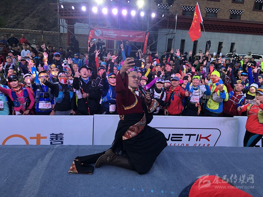 歌手索朗達吉為亞丁越野賽選手加油助威。亞管局供圖