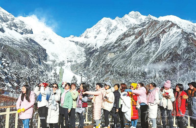 11月20日,游客在海螺溝賞冰雪美景。 川報(bào)記者 衡昌輝 攝