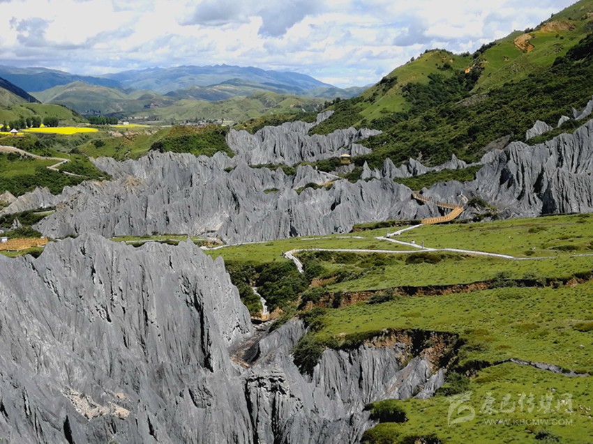 為給當?shù)厝罕娬业揭粭l脫貧增收的致富路,2016年初,道孚縣以招商引資方式引進四川眾奧文旅投資有限公司開發(fā)打造土石林景區(qū)。同年11月,土石林景區(qū)成功創(chuàng)建為國家4A級景區(qū)。2017年7月,土石林景區(qū)更名為墨石公園并正式開門營業(yè)。與此同時,景區(qū)所在的中古村村民興建民居接待70余家,其中景區(qū)附近的民居全部租給開發(fā)公司經(jīng)營。