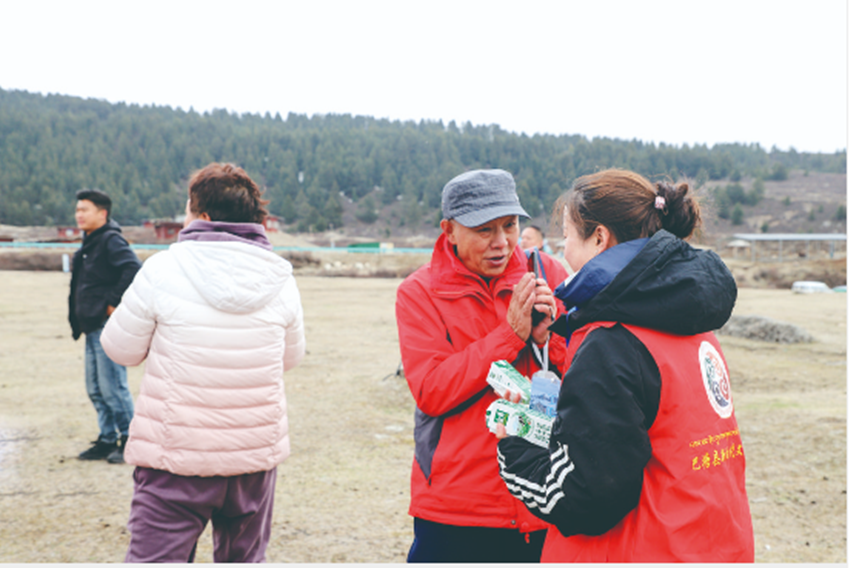 為切實(shí)做好旅游服務(wù)工作,巴塘縣在全縣各鄉(xiāng)鎮(zhèn)、景區(qū)景點(diǎn)、觀景平臺(tái)設(shè)置志愿服務(wù)站,提供旅游咨詢、游客接待、景點(diǎn)推介、指路引路、急救科普以及預(yù)防高反小知識(shí)等服務(wù)。圖為在措普溝景區(qū)內(nèi),志愿者為游客提供服務(wù)保障,用“暖心”讓游客安心、放心。 馮向智 攝