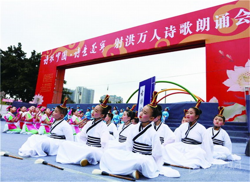 據(jù)了解,本次活動(dòng)是《詩(shī)刊》2016年度陳子昂詩(shī)歌獎(jiǎng)系列活動(dòng)之一,參與人數(shù)之多、規(guī)模之大,在射洪縣尚屬首次?,F(xiàn)場(chǎng)由射洪中小學(xué)生和企事業(yè)單位組成的方陣和演出隊(duì)伍,以載歌載舞或配樂詩(shī)朗誦等形式登臺(tái)表演, 內(nèi)容以經(jīng)典詩(shī)詞為主,也有圍繞當(dāng)前中心工作而創(chuàng)作的新詩(shī)。這是文化的傳承,更是血脈的延續(xù)。參加詩(shī)歌朗誦會(huì)的最小的4歲,或許他們不懂文字背后的美,并不理解字里行間透露出的人生況味,但他們?cè)谏浜檫@樣的文學(xué)滋 養(yǎng)中出生、成長(zhǎng)。