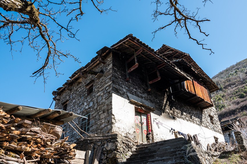 魚(yú)通人的房屋符合古人對(duì)居所背山面水的要求,多依山而建。房屋為木石混合結(jié)構(gòu),以片石木材和黃泥為主要材料建成,當(dāng)?shù)厝朔Q(chēng)之為“碉房”。房屋用石塊壘起,以木頭為墻筋,每隔一定高度,橫砌進(jìn)入石塊,融為一體,使之更為堅(jiān)固牢靠?!暗锓俊?/span> 一般為三層或四層,呈四角或六角形。底層為關(guān)牲畜。第二層為“堂屋”, 在過(guò)去,是集做飯、吃飯、烤火、家人日?;顒?dòng)為一體的場(chǎng)所,地上設(shè)有火塘、灶,并在火塘上設(shè)石制三腳鍋莊或鐵三腳。第三層為各居室,有的設(shè)有貯藏室和會(huì)客屋。頂層為經(jīng)堂,室外為曬壩,作打場(chǎng)、曬場(chǎng)用。有些在外側(cè)設(shè)有一小吊腳樓,可堆放雜物。隨著時(shí)間的流逝,古老的碉房已無(wú)法滿足現(xiàn)在居民的需求,已很少有人居住,而新式碉房在傳統(tǒng)的基礎(chǔ)上開(kāi)始出現(xiàn)。