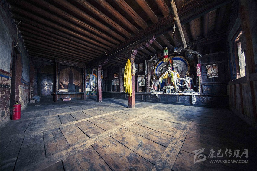 整個自麥經(jīng)堂內(nèi)除了佛像外,所有的家具都已經(jīng)被搬走,但從墻上的壁畫和佛像上,依然還能看出當(dāng)年自麥家族的輝煌。