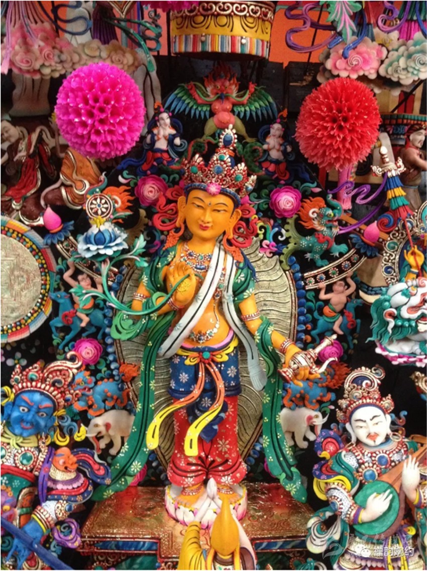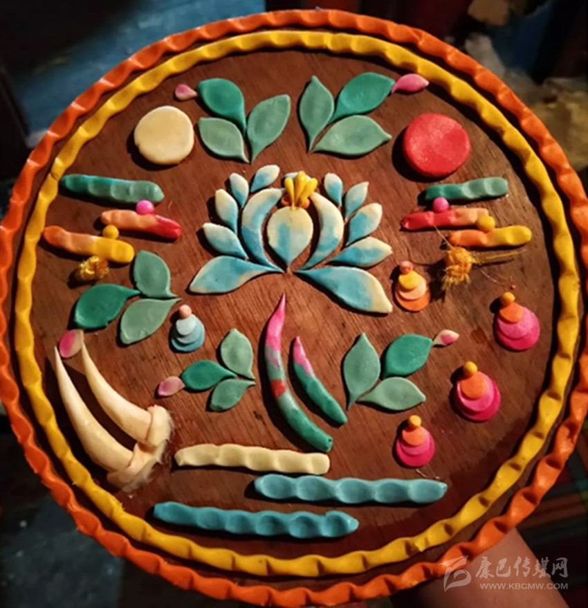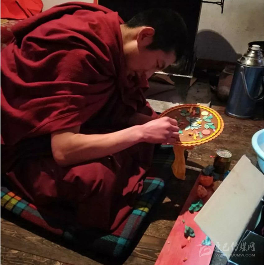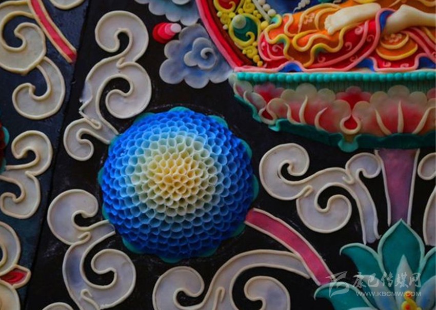 一盆冰涼的水、一坨坨顏色各異的酥油。巴塘縣康寧寺里,幾位藝僧正在滴水成冰的天氣里,手指不停浸在水中,然后掐出一塊塊酥油,捏成各種佛像、人物、飛禽走獸以及花卉草木,栩栩如生。