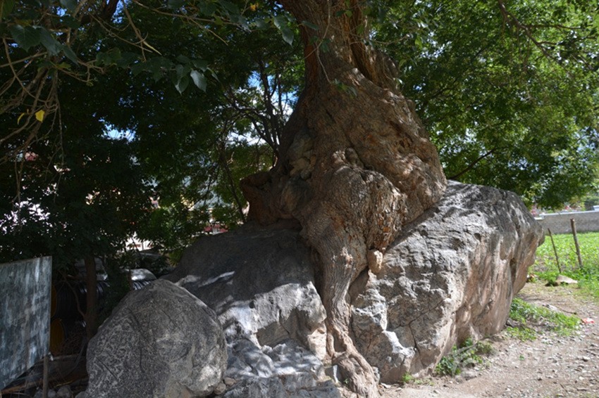 如今古桑抱石守衛(wèi)著巴塘這片熱土近千年,對(duì)研究巴塘的人文和氣候變化有極其重要的價(jià)值,保護(hù)好它理所應(yīng)當(dāng),擔(dān)心的是巨石旁長(zhǎng)起兩棵皂莢樹(shù),已比碗口還粗,大有后來(lái)居上之勢(shì),若不未雨綢繆,必勢(shì)大難除。