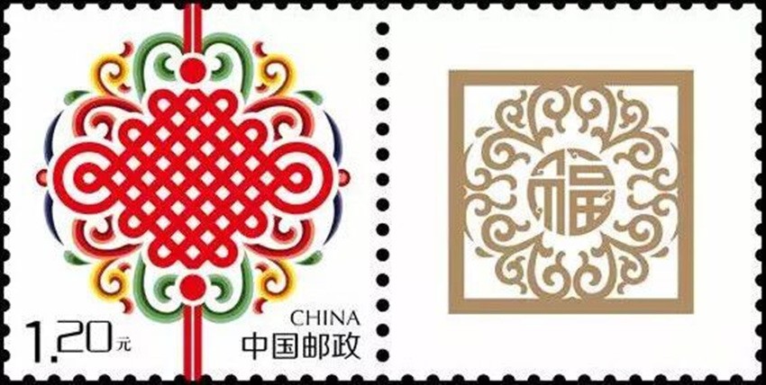 2002年5月10日,中國郵政發(fā)行《如意》個性化服務專用郵票一枚。主票圖案為如意柄端系著一個紅色“中國結(jié)”,附票有“祝?!倍?; 2003年3月3日,中國郵政發(fā)行《同心結(jié)》個性化服務專用郵票一枚。主票圖案為盤長結(jié)4邊編織有心型繩結(jié)的同心結(jié),附票為“祝?!倍郑?006年9月25日,中國郵政發(fā)行《中華全國歸國華僑聯(lián)合會成立五十周年》紀念郵票一枚。圖案為阿拉伯數(shù)字“5”與中華全國歸國華僑聯(lián)合會圓形會徽組成數(shù)字“50”,象征全國僑聯(lián)五十周年,背景畫面為淡淡的粉紅色“中國結(jié)”。寓意歸國華僑與全國人民血肉相連,同心同德共同建設美好家園;2013年8月8日,中國郵政發(fā)行一枚《美好祝?!焚R卡專用郵票,圖案為象征喜慶的紅色“中國結(jié)”;2014年9月20日,中國郵政發(fā)行《中國夢(二)——民族振興》特種郵票,其中第四枚“民族團結(jié)”,圖案中載歌載舞的各民族群眾上方有一個大紅的“中國結(jié)”,象征著各民族大團結(jié)。