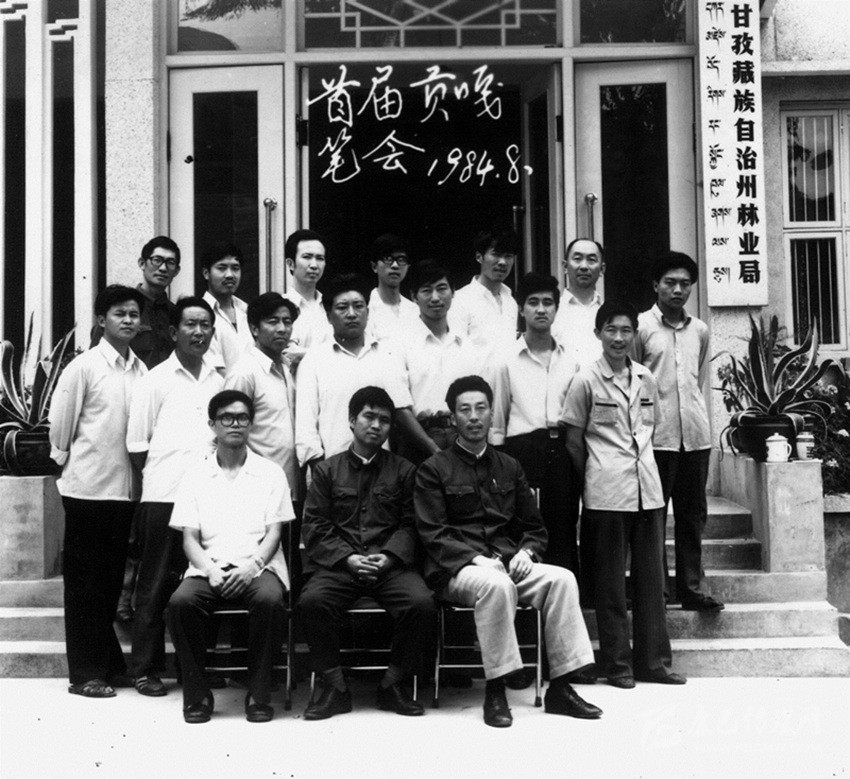我們也在籌備,這就是《貢嘎山》雜志創(chuàng)辦以來的第一次筆會(huì)。根據(jù)當(dāng)時(shí)我州作者的創(chuàng)作情況,編輯們商議決定搞一次筆會(huì),這次筆會(huì)以小說創(chuàng)作為主。當(dāng)時(shí)我州的詩(shī)歌創(chuàng)作非?;钴S,很多從學(xué)校出來參加工作的年青作者都很喜歡詩(shī)歌創(chuàng)作,創(chuàng)作水平也還不錯(cuò),而且還活躍著很多的文學(xué)社團(tuán),散文寫作的人也不少,唯獨(dú)就是小說創(chuàng)作始終在作者人數(shù)和質(zhì)量上都達(dá)不到刊物的要求。針對(duì)這種現(xiàn)狀,我們對(duì)當(dāng)時(shí)發(fā)表和寫過小說的所有作者都進(jìn)行統(tǒng)計(jì),并發(fā)出了參加筆會(huì)的約稿信,并決定1984年8月在康定姑咱鎮(zhèn)林業(yè)管理局招待所舉辦首屆《貢嘎山》筆會(huì),通過近一年的準(zhǔn)備,檢視作者來稿情況確定了18位作者(一名女作者)參加首屆《貢嘎山》筆會(huì),他們是仁真旺杰、高旭帆、胡杰、劉富貴、王浩東、宋濤、格妮措、杜仁信、王方霖、劉述義、孫浩東、牟子、朱長(zhǎng)安等,郭昌平參加了開班后有事走了,給我們留下這張珍貴的合影照片。