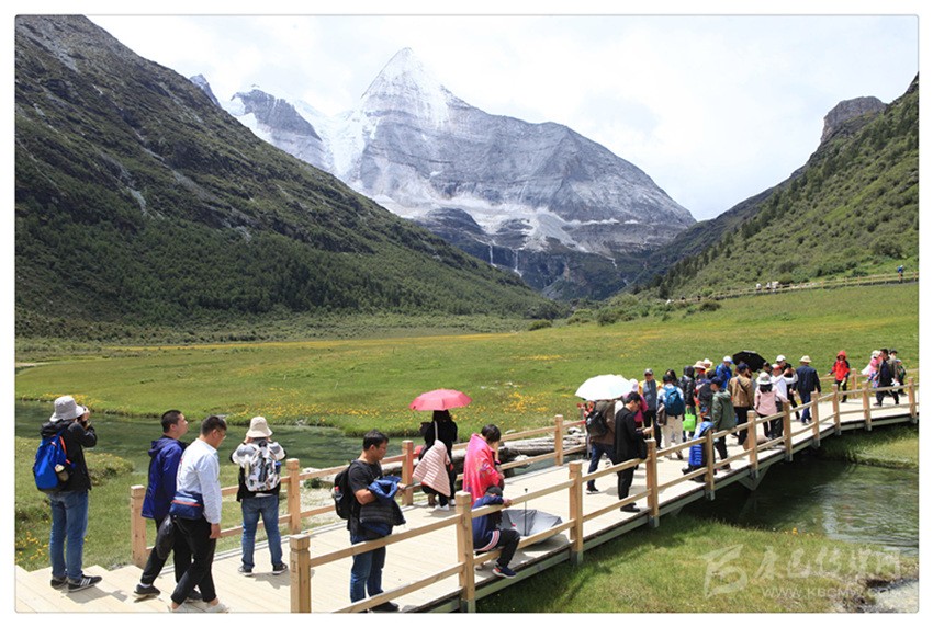 時(shí)值8月中旬,眼前的央邁勇并沒有以海量圖片中常見的白雪皚皚之身示現(xiàn),但其閑靜的氣質(zhì)及強(qiáng)大的氣場,卻深具震撼力,同時(shí),感覺上是雷打不動風(fēng)吹不走的。