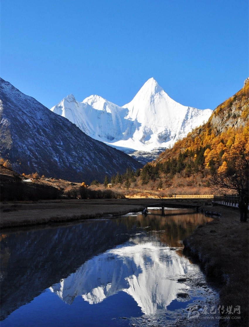 央邁勇,意為“文殊普薩”,海拔5958米,是“三怙主神山”的南峰;狀若一位斜倚在大榻上笑對世界的閑靜處子;在佛教中是智慧的化身。1928年,當(dāng)美國探險(xiǎn)家約瑟夫·洛克先生在云南與稻城毗鄰的崇山峻嶺中遙望央邁勇時(shí),一種被它圣潔、高貴的氣質(zhì)所折服的情感也隨之降臨了;他在日記中由衷感嘆,“央邁勇是我見到的世界上最美的山峰”。