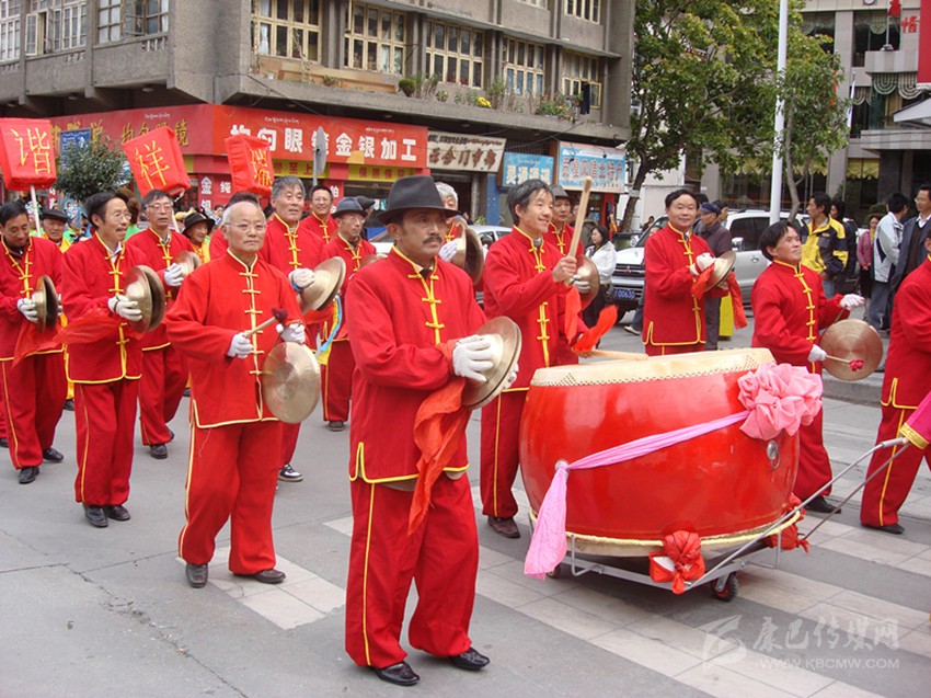 大年三十夜,山谷中的康定城廓鼓聲震天,“鬧山鼓”將過(guò)年的氣氛推向了高潮。當(dāng)年“鬧山鼓”打得最好的是一位人稱“韓八爺”的陜西漢子,后來(lái)“韓八爺”打不動(dòng)了,由另一家陜西戶縣來(lái)的姓徐的人家接替。徐家老父打不動(dòng)了又傳給了徐大哥。到徐大哥操鼓槌時(shí),參與打鼓的已不再全是陜西人了,康定熱愛這鼓聲的藏、漢、回族漢子也參與進(jìn)來(lái),成了多民族的鼓隊(duì)。這原本屬于陜西戶縣的“老陜鼓”,如今在戶縣卻打不全了。徐大哥健在時(shí)說(shuō),“鬧山鼓”鼓譜共有20多節(jié),那年他回戶縣探親,戶縣的鼓匠最多只能打一半的鼓譜,而在康定,全套的鼓譜卻被這支多民族的鼓隊(duì)流傳了下來(lái)。
