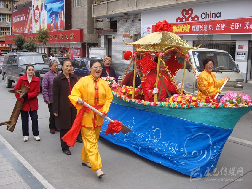 半個(gè)世紀(jì)風(fēng)靡康定城的“船燈”、“馬馬燈”、“鬧山鼓”、“扭秧歌”、“笑頭和尚戲柳翠”、“霸王鞭”……整個(gè)兒就像老陜過(guò)年時(shí)的“社戲”場(chǎng)面。大年初一、十五夜“出燈”游街,熱鬧氣氛把整個(gè)年節(jié)塞得滿滿的。記得我孩童時(shí)見過(guò)一次“出燈”游行,不是晚上而是在大白天(叫“出游”)。寺廟喇嘛吹奏佛樂走在前面,接著是“川北”人的川劇鑼鼓;再后面跟著的就是“馬馬燈”、劉老陜的“船燈”、鐵木社的“龍燈”、二輕局的“霸王鞭”、南門上的弦子隊(duì)、三居委的腰鼓隊(duì)、北三巷的“道孚鍋莊隊(duì)”……游行隊(duì)伍遇街口寬敞地方必圍圈演出?!叭死侠玻死侠?,人老先從頭上老,白的多來(lái)黑的少, 開——船——羅!”“銀須飄灑”的艄公劉老陜用俏皮逗趣的陜腔告白開場(chǎng)詞,在歡喜鑼鼓的伴奏中“劃”著旱船出了場(chǎng)。旱船闖“急流”、過(guò)“險(xiǎn)灘”,風(fēng)趣又逼真;如果哪家的姑娘打扮成古裝戲里的嬌美仕女坐上旱船游了街,那她立馬就成了康定城人皆贊譽(yù)的“美女”。接著就是“馬馬燈”,幾十個(gè)“騎馬橫槍”的古裝將士馳騁上場(chǎng),排兵布陣,穿梭并行,“馬”鈴聲鼓樂聲交織一起……鬧翻了康定城的“三山二水”。