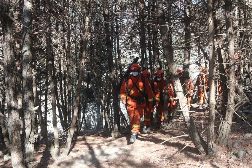 州森防支隊(duì)康定中隊(duì)徒步開展帶裝