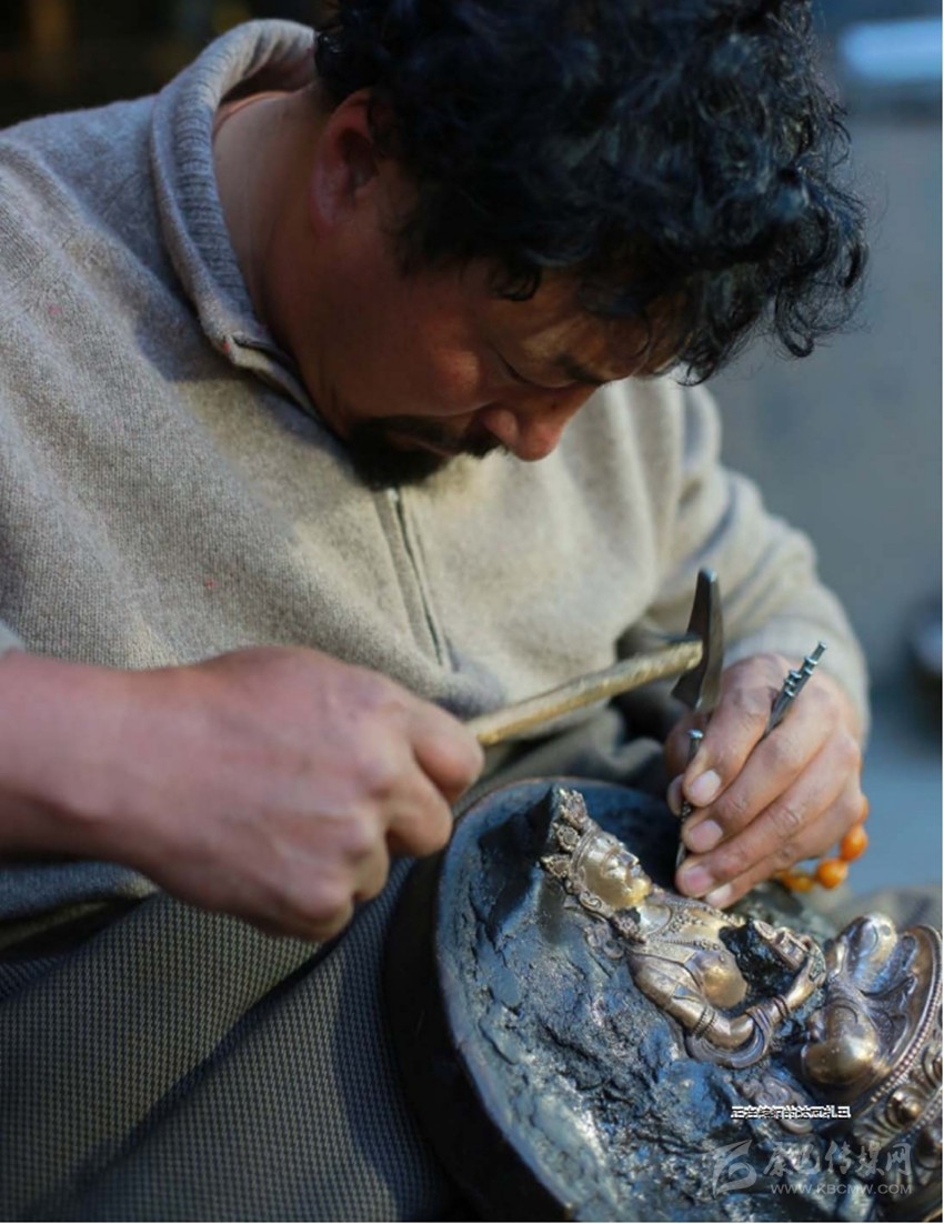 達(dá)瓦扎巴年輕、穩(wěn)重、活力,儼然一副小主人的模樣,用流利的漢語給我們介紹銅鑄技術(shù),也充當(dāng)我們和父親之間的翻譯。我們問達(dá)瓦扎巴麥宿銅鑄佛像與其他地區(qū)的最大差別在哪里,他滿是自豪回答:我們的鎏金銅技術(shù),可以說是獨(dú)家絕活,也是內(nèi)地近乎失傳的古法工藝。有故事為證:二十多年前,因?yàn)橹挥懈赣H一人會這門技術(shù),佛像產(chǎn)量很小。一位常年在印度做古董佛像投資生意的麥宿人回到老家,發(fā)現(xiàn)自己輾轉(zhuǎn)收來的“古董”竟然出自夏雷尼瑪之手。原來因?yàn)楣に嚬艠憔?,夏雷尼瑪制作的佛像被許多人冒充“古董”轉(zhuǎn)賣,竟然流到了印度。