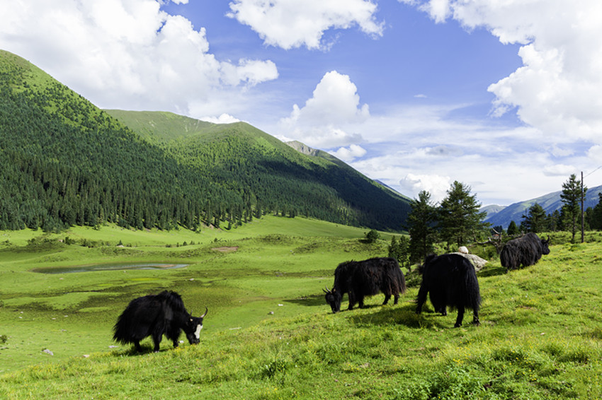 玉科,白猞猁皮鋪展開的長(zhǎng)長(zhǎng)山谷,依尼山是其心臟,扎拉山脈是其頭,噶科河、瑪科河是其雙臂,惹智塘和曲赤塘是其胸膛,革科和慶切科是其雙腳,措達(dá)以下則是其尾。這片山川地勢(shì),晶瑩的雪峰、郁郁蔥蔥的林海、翠綠的草甸,清澈的碧湖,湛藍(lán)如洗的天空、潔白的云朵,棲息著豐富的珍稀動(dòng)植物,構(gòu)成了一幅如詩如畫、動(dòng)人心魄的原生態(tài)畫卷。一年四季景致千姿百態(tài),美不勝收。夏三月,百花盛開,大地鋪展五彩錦緞。秋三月,一片金黃,映襯得山崗黃燦燦。冬三月,雪花翻飛,大地銀裝素裹。難怪旅游達(dá)人們要驚呼,贊美這里是甘孜的阿勒泰。