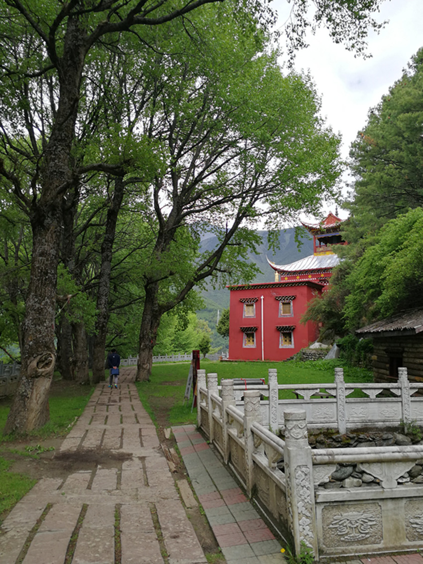 中國民俗有“大年初一不竄門”,這一天,康定人很多都會(huì)去寺廟燒香敬佛。前年大年初一,我便去了觀音閣。進(jìn)門處,有專供燒紙錢的地方。再上階梯,有長列的白色佛塔,進(jìn)寺就可點(diǎn)燈朝拜。出了觀音閣,我順道去找獅子巖。公路一側(cè)的堡坎已將原來的小徑斬?cái)?,翻上堡坎,小徑幾乎已沒了蹤跡。再仰頭望,獅子巖已是掩映在濃密的綠樹雜叢間。長在右側(cè)的花椒樹,已不見蹤影。幾株高大的白楊樹遮天蔽日,最大的都長到盆口粗了?!鞍倌陿淠尽?,這無疑還是當(dāng)年那幾棵白楊樹了。我艱難地鉆過荒叢爬到獅子巖腳下,那“祭祀臺(tái)”上如過去一樣擺放有貢品,旁邊和樹枝上掛有經(jīng)幡,但周圍仍沒有一絲煙熏火燎過的痕跡。