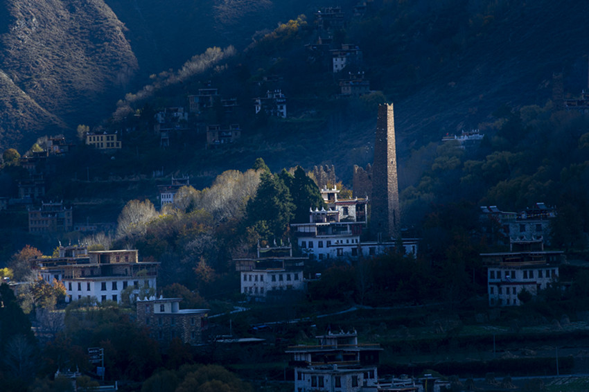 如果說衣著艷麗、高挑健美、輪廓分明、深情嫵媚的丹巴美女,實(shí)現(xiàn)了所有女孩子心中的浪漫的公主夢(mèng),少女心,是丹巴浪漫唯美氣息代表的話。那么筆直挺拔、棱角分明、飽經(jīng)風(fēng)雨、巍然屹立的碉樓,則是丹巴陽剛之美的代表。