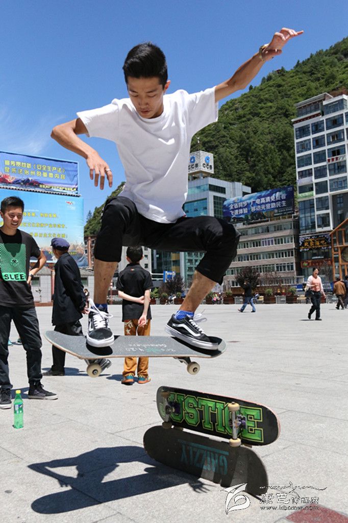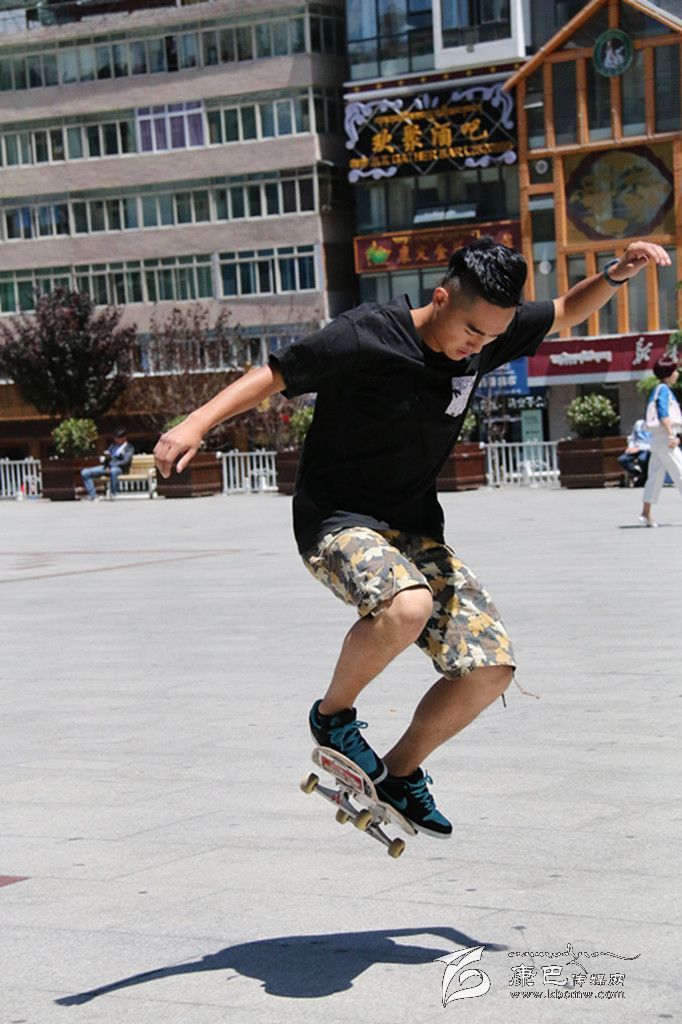 提到極限運(yùn)動(dòng),你首先會(huì)想到什么?直排輪、空中沖浪、跑酷、攀巖……它們中很多都由滑板延伸而來(lái),因此滑板又被稱為極限運(yùn)動(dòng)的“鼻祖”。在康定,有這么一群年輕人,他們每到暑假,每天都會(huì)在情歌廣場(chǎng)集合,踏上滑板、踩上輪滑挑戰(zhàn)一個(gè)個(gè)“不可能的任務(wù)”。一身肥大的T恤牛仔,夸張的金屬耳釘、項(xiàng)鏈、手鏈、戒指,和著動(dòng)感十足的Hip-Hop音樂(lè),踩著滑板在障礙之間穿梭,間或穿插幾個(gè)高難度花式動(dòng)作,引得觀眾此起彼伏地喝彩尖叫……這是很多人印象中滑板、滑輪小子的形象。但當(dāng)賀淼、謝明洋、陳凱他們出現(xiàn)在記者面前時(shí),簡(jiǎn)單的裝束真有點(diǎn)讓記者意外。他們的身上幾乎不見任何首飾,普通的T恤加瘦版牛仔褲,還有頭上簡(jiǎn)單的鴨嘴帽, “Hip-Hop” 前衛(wèi)的影子并不明顯。