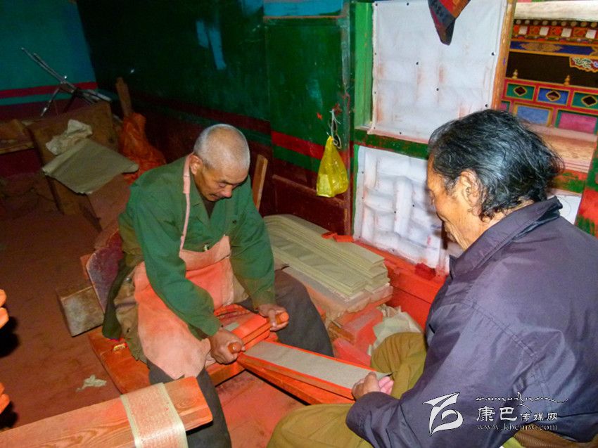 幾大教派寺院的建立,為德格家收羅各種佛教經(jīng)典提供了更方便、更寬闊的途徑。德格巴宮是第六代法王登巴澤仁在52歲時(shí)動(dòng)工興建的。他高薪聘請(qǐng)了精于藏文書法的教師,用藏文書法家穹波雨赤、絨波娃所著的書法標(biāo)準(zhǔn)四十條來教授書法,擇優(yōu)選擇了65人從事模板書寫,400人從事雕刻,然后多次校對(duì)再定版。經(jīng)過5年認(rèn)真細(xì)致的工作,印制完成了《甘珠爾》經(jīng)典103三部,《丹珠爾》23部,《薩迦文集》10部,其他經(jīng)典200多部。