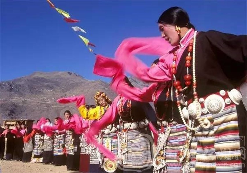 新龍鍋莊享譽(yù)藏區(qū),被譽(yù)為中國(guó)鍋莊之鄉(xiāng)。新龍鍋莊獨(dú)樹一幟,風(fēng)格與其他藏區(qū)的鍋莊迥異。新龍鍋莊據(jù)說是在格薩爾時(shí)代,有一位會(huì)唱山歌的商人,名叫阿俄絨布,他游走經(jīng)商各地。每到一個(gè)地方,阿俄絨布總是一邊經(jīng)商,一邊唱著山歌。他來到新龍以后,就獨(dú)創(chuàng)了一種舞蹈,并傳授給當(dāng)?shù)厝?,這種舞蹈很快在新龍地區(qū)流行起來。由于新龍與世隔絕,這種舞蹈沒有外傳,發(fā)展成為現(xiàn)在的“新龍鍋莊”。
