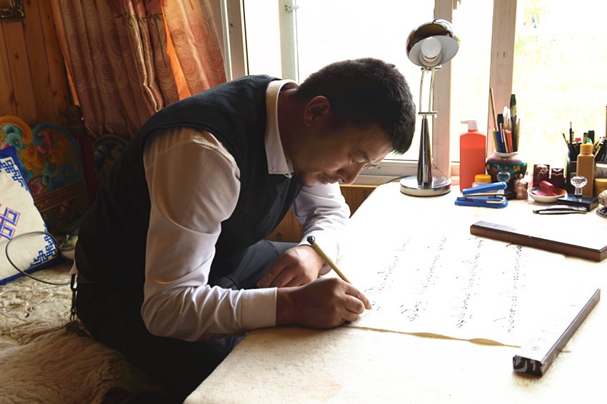 “德珍書(shū)法原本就是集歷史上藏文書(shū)法大師作品精華而成?!边@些年,昂旺曲批呆在理塘,潛心研究當(dāng)代各個(gè)藏文流派名家的書(shū)法作品,同時(shí)和內(nèi)地的漢字書(shū)法名家保持著聯(lián)系。他希望自己沿著“集眾家所長(zhǎng),兼收并蓄”的精神傳統(tǒng),把“德珍派”藏文書(shū)法的傳統(tǒng)發(fā)揚(yáng)廣大,同時(shí)能有所創(chuàng)新。